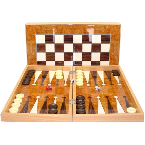 • Burlwood style decoupage wood folding backgammon set