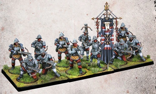 Spiritual descendants of the crossbow armed mercenaries that the infamous mercenary captain, Danilo Meck, developed and deployed, crossbowmen offer the ranged power any Hundred Kingdoms commander needs to dominate on the field.