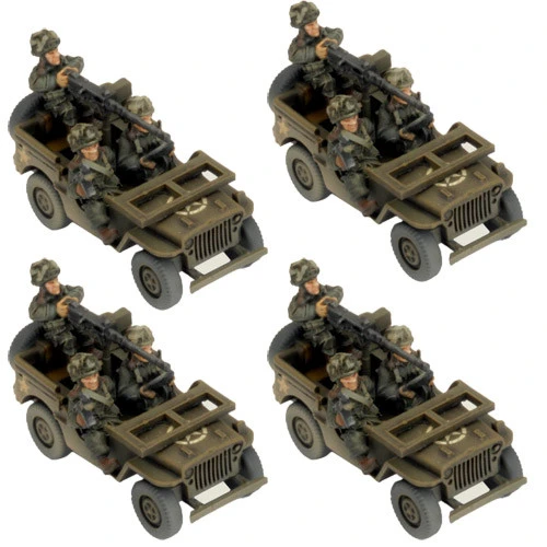 The divisional reconnaissance group has two glider-landed reconnaissance platoons. Equipped with machine-gun-armed jeeps, they are ideal for scouting for enemy counterattacks or as part of a mobile reserve.
