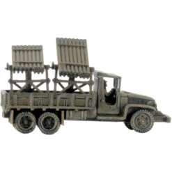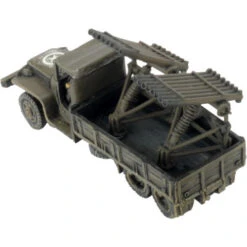 The 2nd Infantry Division first used the T27 4.5″ (114mm) Xylophone rocket launcher in August 1944. They rated them poorly because they were not effective as single launchers. They are now paired up and placed on the back of a 2.5-ton truck for better mobility and stronger bombardments.