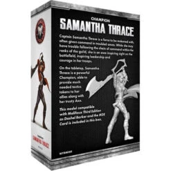 On the tabletop, Samantha Thrace is a powerful Champion, able to provide much needed tactics tokens to her allies along with her trusty Axe.
