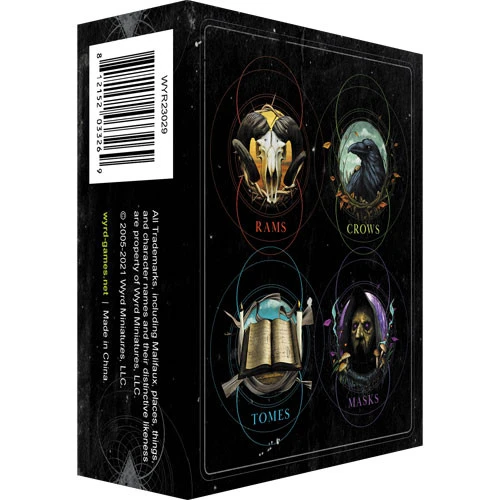 Malifaux uses cards, not dice, and the beautifully illustrated card pack is called a Fate Deck. This Deck is 100% plastic with the Malifaux suits. Two Fate Decks are needed to play the game, one for each player.