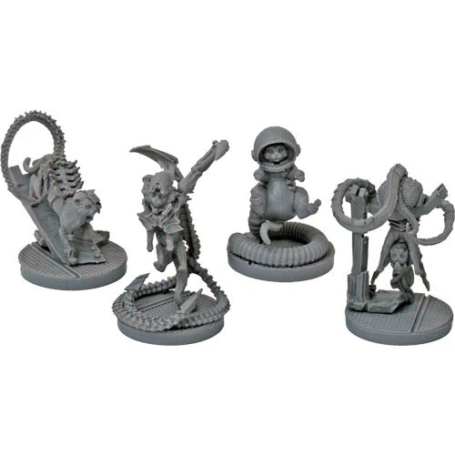 Set of four collectors cats with art cards. These models are purely collectors items and have no additional gameplay value. Each figure is unpianted, pre-assembled, and supplied on a 34mm round base.